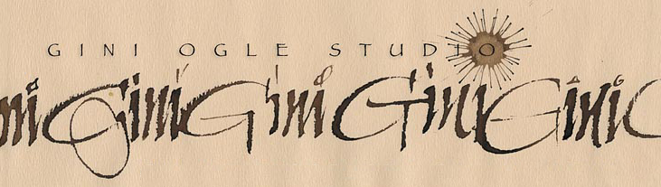 Recognition of Gini’s artwork include acceptance into a national juried class at MIT taught by renowned artist, Herman Zapt of germany, and winning entries in th National Postal Museum Envelope Contest. In addition, Gini was one of the twelve national artists selected to study in England with three acclaimed calligraphy authors and instructors. Publishing credits include entries in “Speedball” intruction book, “Letter Arts Review” magazine, and the “Alphabetica” collection.